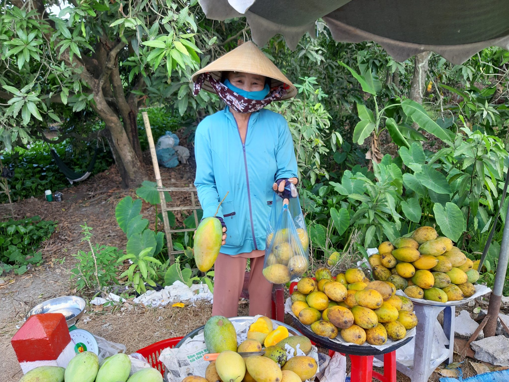 Nhưng cuộc sống mưu sinh của những tiểu thương kinh doanh cây ăn trái không thể ngưng nghỉ, bởi nếu họ ngưng trì trái cây của các nhà vườn như: Xoài, mít, nhãn … tới kỳ thu hoạch sẽ tồn đọng hư thối, hoặc đổ bỏ. Nhưng bám trụ kinh doanh thì giảm doanh thu và thua lỗ, do giá bán gần như đại hạ giá: Xoài Đài Loan 5 – 6.000đ/kg , xoài cát Hòa lộc 15- 20.000đ/kg, xoài cát chi 5-10.000đ/kg, bưởi da xanh 25.000đ/kg vẫn ế ẩm.
