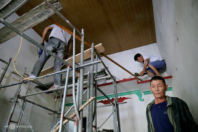 Ông Đoàn dự định đi làm thuê tích lũy thêm ít tiền để vài tháng nữa sửa nhà, sau khi được chính quyền cho người tới hỗ trợ lợp lại mái ngói ở tạm. Song, mấy hôm nay nghe tin bão Vamco có thể đổ bộ vào Hà Tĩnh, ông lo lắng, bàn với vợ đi vay họ hàng, làng xóm hàng chục triệu đồng về làm luôn.