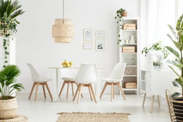 Một bảng màu trung tính không mang lại cảm giác nhàm chán mà ngược lại tạo ra không gian hài hòa, tự nhiên. Vật liệu tự nhiên đặc biệt là vật liệu bền vững như sắt, đá cẩm thạch, da, gỗ, tre, mây, vỏ sò, lông vũ, ghế đẩu bằng gỗ, thảm sisal, giấy, chậu đất nung, len, gỗ thô, vải lanh, và sợi gai dầu là những gợi ý hàng đầu khi trang trí nội thất.