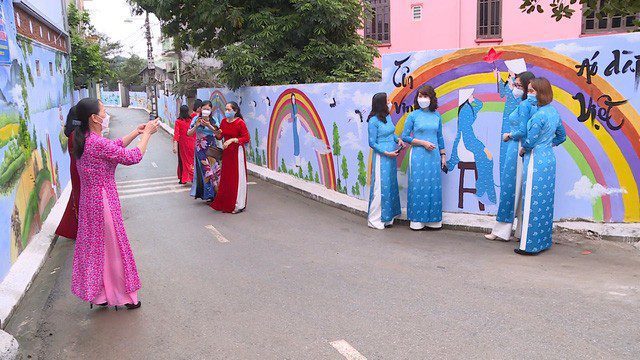 Cũng trong dịp này, một con đường bích hoạ đã được Hội Phụ nữ xã Kiêu Kỵ, huyện Gia Lâm, Hà Nội hoàn thành. Đây sẽ là điểm check-in mới cho các chị em với những tà áo dài xúng xính.
