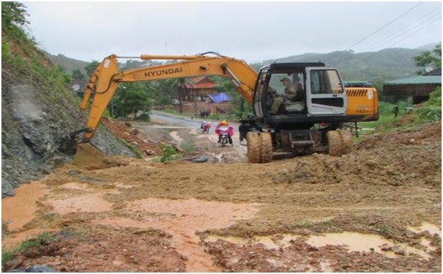 Huyện Con Cuôngtừ tối qua đến hôm nay, trên địa bàn đã có mưa to, nước từ thượng nguồn đổ về với lưu lượng lớn khiến mực nước các khe, suối dâng cao và nhanh, khiến giao thông ách tắc và chia cắt, cô lập nhiều nơi.Để hạn chế thiệt hại đến mức thấp nhất, từ chiều qua, UBND các xã đã tổ chức sơ tán các hộ dân có nguy cơ ngập lụt và sạt lở đến nơi an toàn, Ban Chỉ huy tìm kiếm cứu nạn của xã túc trực 24/24 giờ. Tại các cầu tràn và điểm xung yếu, lãnh đạo xã được bố trí túc trực, không để người và các loại phương tiện qua lại.Hàng trăm mét khối đất đá trên núi đoạn qua bản Kẻ Sùng xã Mậu Đức tràn xuống lòng đường gây ách tắc. Hiện tại các phương tiện cơ giới chưa thể lưu thông.