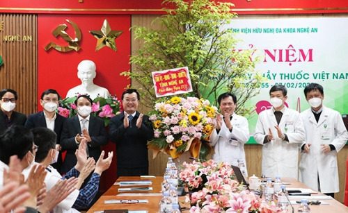 Đến thăm Bệnh viện Hữu nghị Đa khoa tỉnh Nghệ An, gửi lời chúc mừng tốt đẹp nhất tới cán bộ, công nhân viên, người lao động của Bệnh viện nhân ngày Thầy thuốc Việt Nam, Chủ tịch UBND tỉnh ghi nhận, đánh giá cao công tác khám chữa bệnh chăm sóc sức khỏe nhân dân, với vai trò là cơ sở y tế chủ lực, nhất là công tác phòng, chống dịch COVID-19, điều trị các trường hợp bệnh nhân nặng mắc COVID-19, thực hiện tốt công tác tiêm chủng; hỗ trợ chi viện nhân lực giúp ngành y tế các địa phương phòng chống dịch.