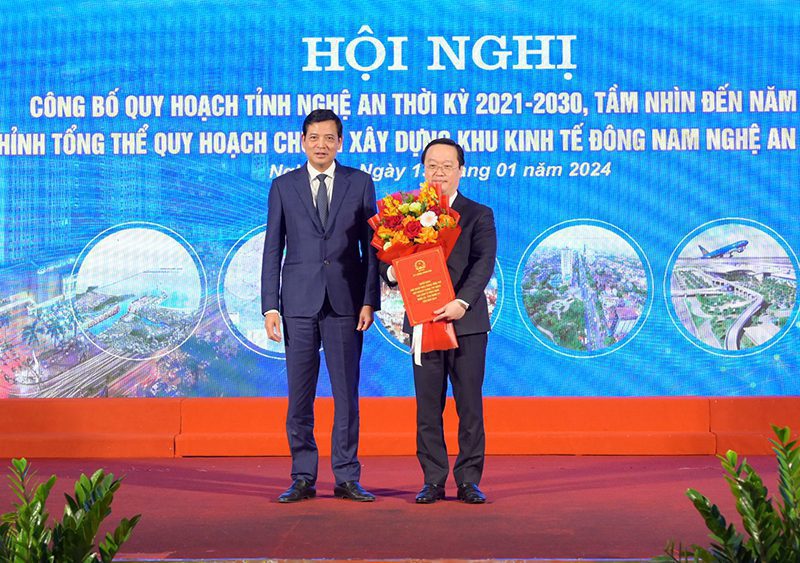 Điểm lại những kết quả nổi bật Nghệ An đạt được, Phó Thủ tướng Chính phủ chúc mừng và biểu dương những thành tựu nổi bật của Đảng bộ, chính quyền, quân và dân tỉnh Nghệ An trong suốt chặng đường vừa qua. Với Quy hoạch tỉnh và Đồ án điều chỉnh quy hoạch xây dựng Khu kinh tế Đông Nam công bố hôm nay được xây dựng với tầm nhìn dài hạn được đặt trong tổng thể phát triển vùng Bắc Trung bộ và duyên hải Miền Trung, dựa trên tiềm năng khác biệt, cơ hội nổi trội, lợi thế cạnh tranh. Theo Phó Thủ tướng Chính phủ, vấn đề quan trọng còn lại là làm thế nào để tổ chức triển khai thực hiện có hiệu quả các quy hoạch.