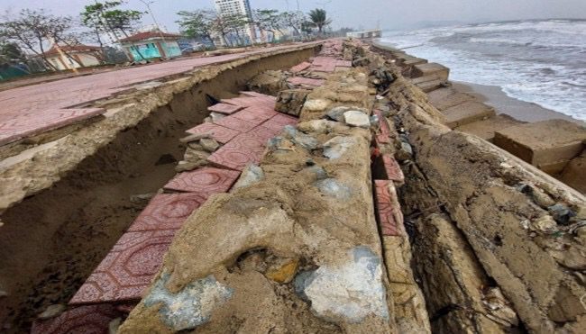 Hiện, công tác khắc phục sự cố sạt lở khoảng 2,5km bờ kè, đê biển do ảnh hưởng của các cơn bão vẫn chưa được triển khai thực hiện