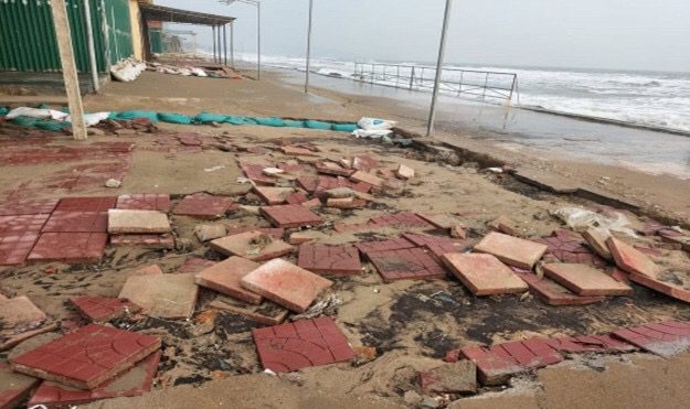 Do ảnh hưởng hoàn lưu của cơn bão số 9, từ ngày 28/10 cho đến ngày 31/10/2020, tại biển thị xã Cửa Lò, tỉnh Nghệ An có mưa to và rất to, sóng biển dâng cao từ 2- 2,5m, va đập mạnh đã làm hư hỏng nghiêm trọng hệ thống kè chắn sóng dọc bờ bãi biển.