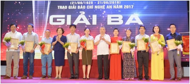 Tại lễ kỷ niệm, tỉnh Nghệ An cũng đã phát động hưởng ứng tham gia “Giải Búa liềm vàng” năm 2018. Đây là giải báo chí có ý nghĩa chính trị sâu sắc nhằm tuyên truyền về Đảng, góp phần thúc đẩy công tác xây dựng Đảng, Nhà nước. Nhân dịp này,Hội Nhà báo Việt Nam tỉnh Nghệ An vinh dự đón nhận Cờ thi đua xuất sắc năm 2017 của Hội nhà báo Việt Nam trao tặng, 10 Hội viên thuộc Hội Nhà Báo tỉnh Nghệ An được Chủ tịch Hội Nhà báo Việt Nam đã tặng Kỷ niệm chương “Vì sự nghiệp báo chí Việt Nam”, Hội Nhà báo Việt Nam đã trao Bằng khen cho tập thể Hội Nhà báo Nghệ An và 3 cá nhân có thành tích xuất sắc về nghiệp vụ và xây dựng Hội năm 2017. Giải Báo chí Nghệ An năm nay đã có hơn 100 tác phẩm của phóng viên, nhà báo, nhóm phóng viên, cộng tác viên ở các thể loại báo in, báo hình, báo nói, báo điện tử, ảnh báo chí. Qua các vòng chấm sơ khảo và chung khảo, có 25 tác phẩm đạt Giải báo chí Nghệ An năm 2017, với 1 tác phẩm đạt giải nhất, 5 tác phẩm đạt giải nhì, 10 tác phẩm đạt giải ba và 9 tác phẩm đạt giải khuyến khích.