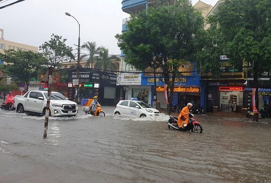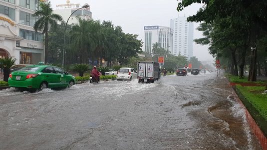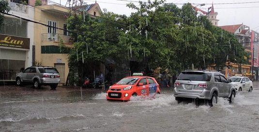 Với lưu lượng mưa từ tối qua đến sáng nay vẫn chưa có dấu hiệu dừng lại khiến nhiều tuyến đường thành phố Vinh ngập trong nước. Một số tuyến phố ngập sâu như đường Nguyễn Duy Trinh, Đặng Thái Thân, Duy Tân, Hoàng Phan Thái, Quang Trung, Nguyễn Thị Minh Khai, Trần Huy Liệu, Đinh Công Tráng (TP Vinh)… đều mênh mông nước nên chính quyền địa phương phải huy động lực lượng CSGT, bộ đội ra điều tiết, phân luồng để đảm bảo an toàn cho các phương tiện giao thông.