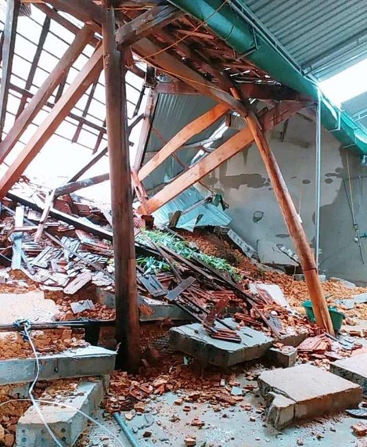 Tại huyện Nam Đàn, Nghệ An do mưa lớn đã xảy ra sạt lở đất khiến một nhà dân ở xã Nam Lộc bị gãy sập. Một số nhà dân cũng bị đất đá sạt lở trôi vào nhà.