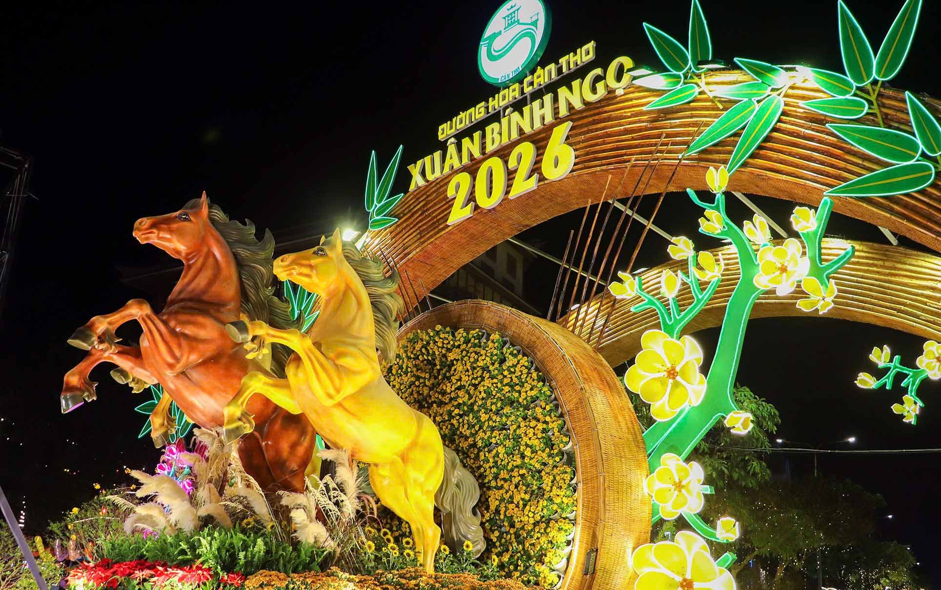 Tối 14/2/2026, thành phố Cần Thơ khai mạc Đường Hoa nghệ thuật Xuân Bính Ngọ 2026 với chủ đề “Tết sum vầy” nổi bật hình tượng những con ngựa nhiều sắc màu rộn ràng tươi đẹp.