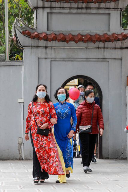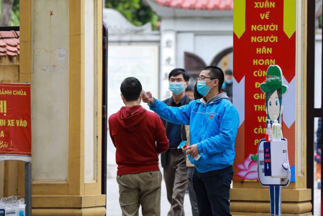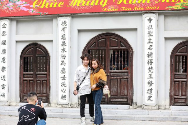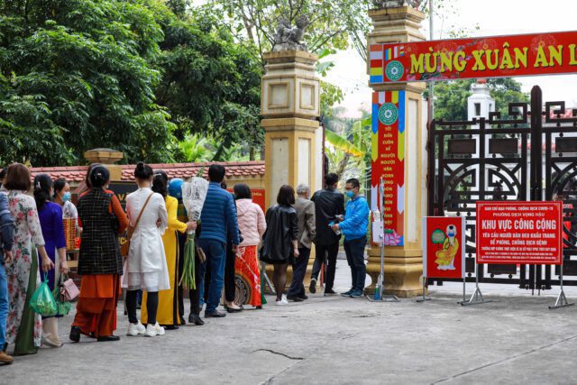 Để đảm bảo quy định về việc phòng chống dịch Covid 19 cũng nhưng đáp ứng nhu cầu về văn hoá tâm linh dịp đầu xuân năm mơi của nhân dân. Đoàn thanh niên phường Dịch Vọng Hậu đã thực hiện việc đo thân nhiệt và phát khẩu trang miễn phí cho những du khách thiếu khẩu trang khi vào chùa dâng hương.
