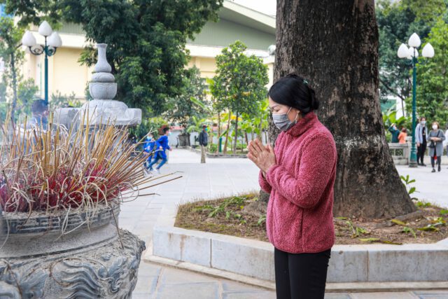 Phường Dịch Vọng Hậu là địa phương có hai ca dương tính với Covid 19 trong tháng 2/2021, là điểm nóng của vùng dịch. Thế nhưng việc sinh hoạt văn hoá tâm linh vào dịp đầu xuân năm mới. Chùa Thánh Chúa toạ lạc trên địa bàn phường Dịch Vọng Hậu vẫn mở cửa đón khách đến dâng hương đầu xuân.