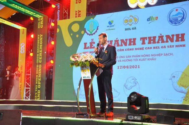 Ông Kris Van Daele – Tổng Giám đốc Bel Gà Việt Nam và Campuchia cho biết nhà máy có ý nghĩa chiến lược trong kế hoạch phát triển ngành chăn nuôi dù có quy mô không quá lớn; lứa gà con 1 tuổi đạt tiêu chuẩn châu Âu sẽ chào đời ở nhà máy này vào ngày 21/4.