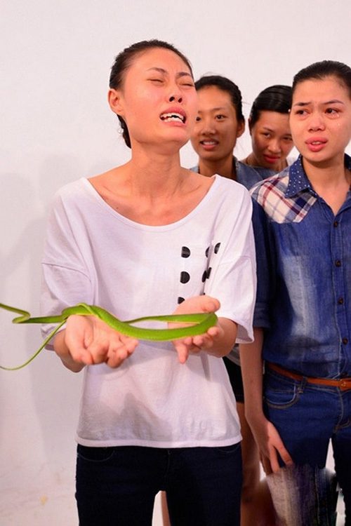 Quán quân Next Top Model Mai Giang khóc ngất khi phải tạo dáng với rắn