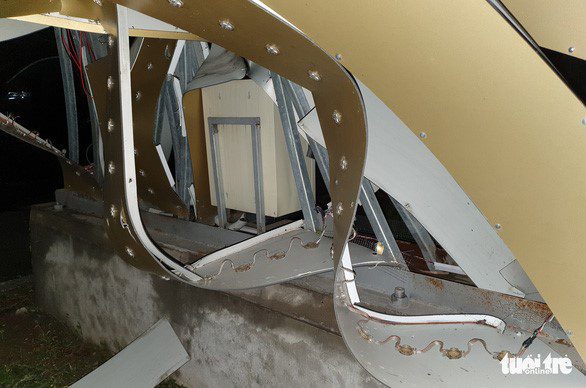 Trong đó, một số cột đèn đổ trong dải phân cách, còn lại một số trường hợp bị đổ lấn ra làn đường gây nguy hiểm cho các phương tiện giao thông. Các mối hàn của các cột đều bị bung và các thanh thép chịu lực biến dạng.