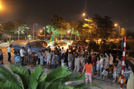 23 giờ đêm ngày 15/10, hàng trăm cư dân chung cư Gemek 1 (Hoài Đức, Hà Nội) xách theo can nhựa, chai lọ… xếp hàng dài lấy nước sạch từ nhà máy nước Hà Nội cung cấp miễn phí để dùng tạm, sau thông tin nước sông Đà nhiễm dầu bẩn. Hình ảnh bà con xếp hàng lúc đêm khuya với đủ thứ xô chậu, đủ lứa tuổi, từ già đến trẻ, đứng chờ lấy nước để mang lên chung cư cao tầng, phản ánh khá tiêu biểu nỗi cực khổ của người dân khi thiếu nước sạch. Nhiều cư dân tại đây đã phản ánh rằng những ngày qua, nước bị nhiễm bẩn khiến họ có hiện tượng ngứa da, mụn nhọt, đầy bụng…