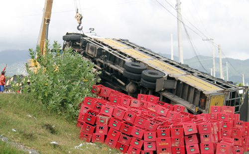 Cảnh sát giao thông TP Cam Ranh đến ghi nhận, làm rõ nguyên nhân. Chủ xe thuê công nhân thu dọn các két bia vào một góc và cẩu xe gặp nạn khỏi hiện trường.