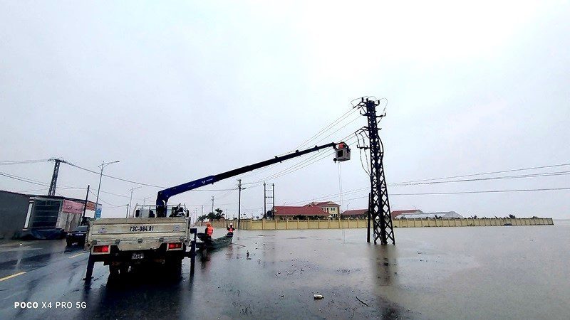 Mưa rất to và lũ lớn trên các sông gây ngập lụt ở nhiều huyện như Quảng Ninh, Lệ Thủy, Đồng Hới, Quảng Trạch… Tình trạng ngập lụt không chỉ gây thiệt hại về tài sản của nhân dân mà còn gây ảnh hưởng đến lưới điện trên địa bàn. Nhằm đảm bảo an toàn, khắc phục nhanh các sự cố, các Điện lực trực thuộc đã tổ chức trực xử lý sự cố 24/24. Công ty cũng phối hợp chặt chẽ với Ban chỉ huy PCTT&TKCN trên địa bàn, tổ chức phòng, chống thiên tai, đảm bảo an toàn tuyệt đối cho người, thiết bị và công trình; tăng cường các mối liên hệ (đường dây nóng tin cậy) với các địa phương (xã, phường) có nguy cơ ngập lụt để chủ động cắt điện kịp thời khi nước dâng, lũ lụt.