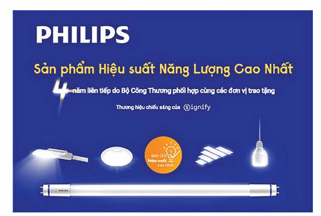 - Sản phẩm LED siêu tiết kiệm & hiệu suất cao: Với các dòng đèn như Philips Master MAS LEDtube, LED Streetlight, LED Downlight, LED Fortimo và LED Bright, Signify đã mang đến giải pháp chiếu sáng với hiệu suất ánh sáng vượt trội, giúp tiết kiệm đến 44% năng lượng so với đèn LED thông thường, đồng thời đạt hiệu suất chiếu sáng cao (≥ 200 lm/W).