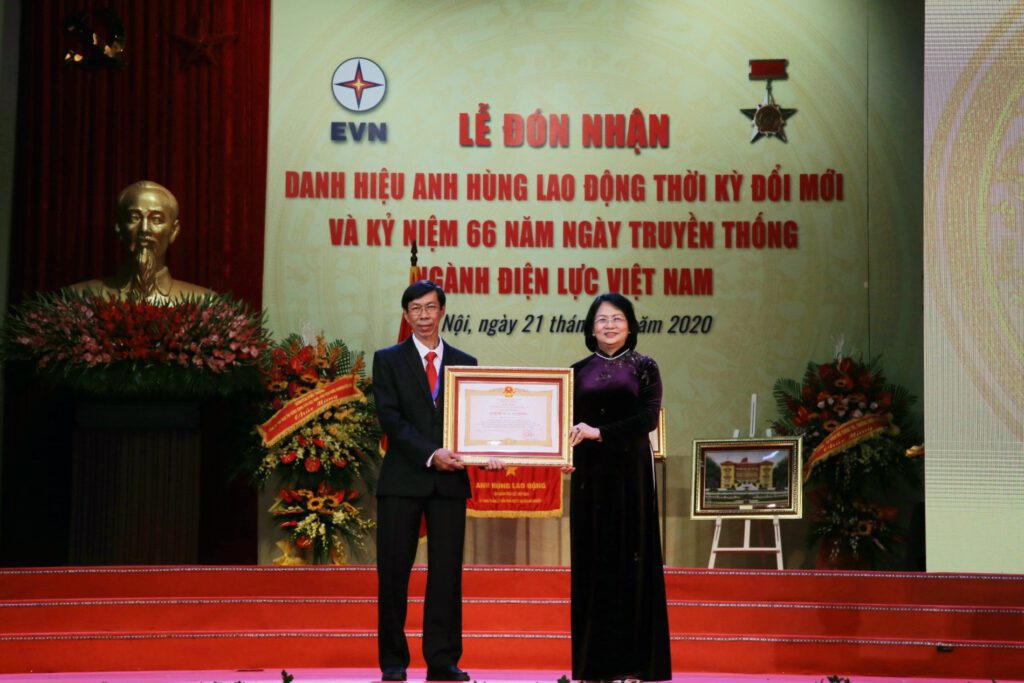 Sáng 21/12, tại Hà Nội, đồng chí Đặng Thị Ngọc Thịnh – Ủy viên Ban Chấp hành Trung ương Đảng, Phó Chủ tịch nước Cộng hòa Xã hội Chủ nghĩa Việt Nam, thừa uỷ quyền của Chủ tịch nước trao tặng danh hiệu cao quý Anh hùng Lao động Thời kỳ đổi mới cho Tập đoàn Điện lực Việt Nam.
