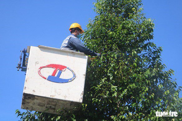 Theo ghi nhận của Tuổi Trẻ Online, khoảng 8h sáng 7-9, công nhân thuộc Công ty TNHH một thành viên Công viên cây xanh TP đã có mặt tại tuyến đường Phạm Văn Đồng (đoạn gần cầu vượt Gò Dưa) để phun thuốc sinh học cho nhiều cây xanh bị sâu ăn lá phá hoại.