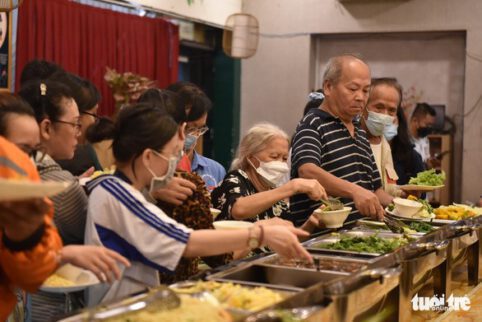 Cứ đúng hai bữa trưa và chiều các ngày trong tuần, bếp ăn Mãn Tự (quận 1, TP.HCM) lại đầy ắp hơn 30 món ăn chay các loại và phục vụ tùy tâm cho người dân.
