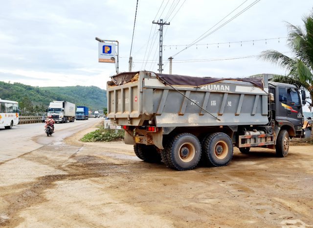 Những đoàn xe có trọng tải lớn, chở đất vượt thành thùng, không che bạt kĩ càng, phục vụ cho các dự án làm ảnh hưởng đến kết cấu công trình giao thông đường bộ, mất ATGT làm ô nhiễm môi trường trên QL 1A (đoạn qua thị xã Đức Phổ, tỉnh Quảng Ngãi) cần phải tuyên truyền và xử lý.