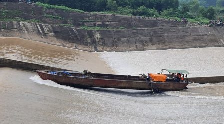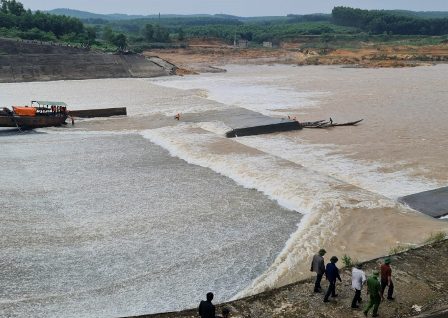 Do vậy, lực lượng chức năng áp bơm đập phao cao su phía trên thân đập tràn để hạn chế dòng chảy để lực lượng cứu nạn cùng người dân địa phương dùng thuyền máy tiếp cận và buộc dây cáp vào con tàu hút cát, sỏi bị mắc kẹt rồi thả dây cáp trôi xuống phía 7 người gặp nạn, giúp họ bám vào dây đi ngược lên lại con tàu.