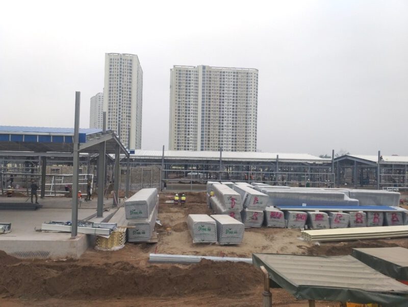 Bệnh viện dã chiến Hồi sức điều trị bệnh nhân COVID-19 nặng và nguy kịch do Bệnh viện Đại học Y làm chủ đầu tư đang thi công nước rút