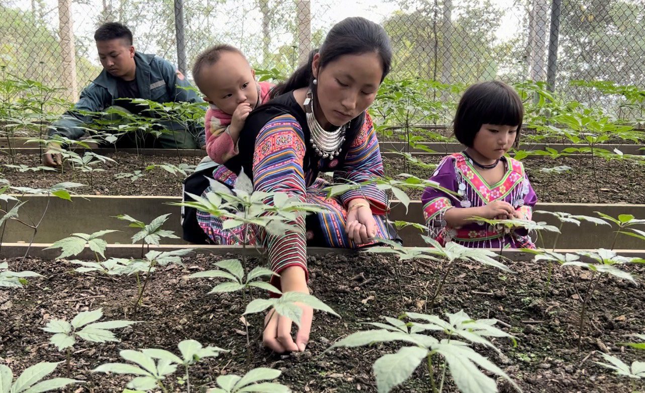 3. Công nhân chăm sóc vườn Sâm Ngọc Linh tại bản Sam Ta, xã Chiềng Chung, huyện Mai Sơn (Sơn La), (ảnh nhân vật cung cấp)