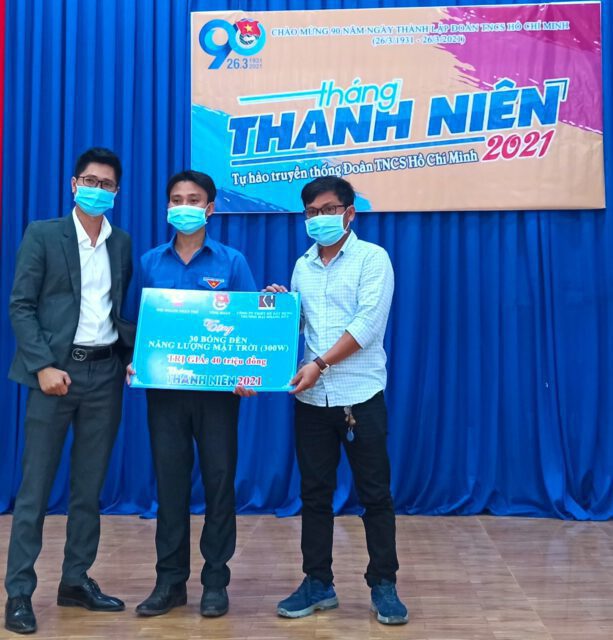 Ngoài ra, Tỉnh Đoàn Bình Phước cùng Hội Doanh nhân trẻ tỉnh, anh Hà Văn Hải – PGĐ Công ty TNHH Thiết kế Xây dựng và Thương mại Khang Huy (TX. Bình Long, tỉnh Bình Phước) trao tặng 30 bóng đèn năng lượng mặt trời trị giá 40 triệu đồng cho huyện Đoàn Hớn Quản để góp sức xây dựng nông thôn mới. Anh Nông Văn Cường – Phó Bí thư Đoàn cơ sở Sở NN&PTNT, đại diện Đội tri thức trẻ tỉnh đã trao 3 nghìn con cá lăng nha giống trị giá 7,5 triệu đồng cho huyện Đoàn Hớn Quản.