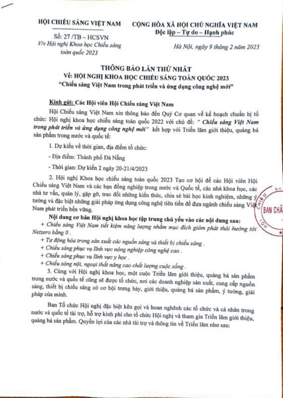 Thông báo lần 2 của Hội chiếu sáng Việt Nam
