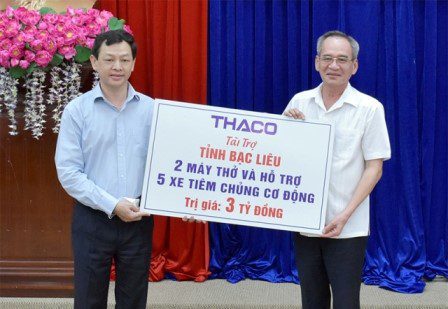 Ngoài ra, để hỗ trợ các tỉnh Bạc Liêu và Đắk Lắk trong công tác tiêm chủng, THACO cũng đã hỗ trợ mỗi tỉnh 5 xe tiêm chủng cơ động với chi phí là 4 tỷ đồng. ừ khi bùng phát dịch đến nay, THACO đã hỗ trợ công tác phòng chống dịch trong cả nước với kinh phí hơn 1.000 tỷ đồng bao gồm trao tặng 3,8 triệu bộ kit test nhanh Covid-19, 63 xe chuyên dụng vận chuyển vắc xin, 63 xe tiêm chủng lưu động, 60 xe cứu thương, 1 xe chụp X-Quang và xét nghiệm lưu động và điều động hỗ trợ 81 xe tiêm chủng cơ động cùng nhiều vật tư, trang thiết bị y tế cho các đơn vị tuyến đầu chống dịch.