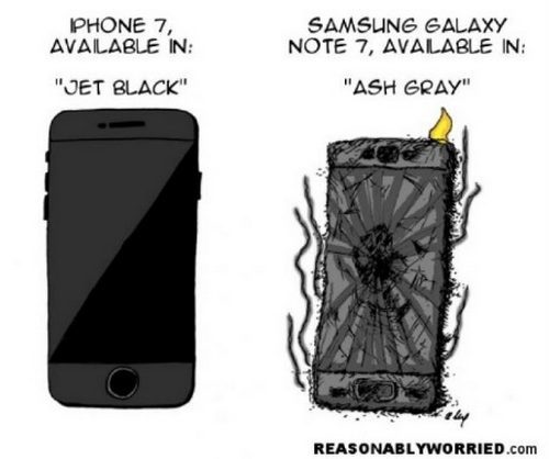 iPhone 7 có màu mới là Jet Black. Còn Note7 có màu mới là “Ash Gray” (tạm dịch là “tro xám”)