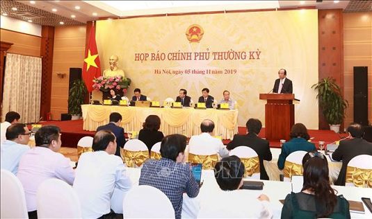 Ngày 5/11, tại Trụ sở Chính phủ, Thủ tướng Chính phủ Nguyễn Xuân Phúc đã chủ trì phiên họp Chính phủ thường kỳ tháng 10/2019. Tại phiên họp, Chính phủ đã nghe và thảo luận các nội dung: Báo cáo tình hình kinh tế-xã hội tháng 10 và 10 tháng năm 2019; xem xét tháo gỡ khó khăn về tín dụng cho một số doanh nghiệp Việt Nam có hoạt động xuất khẩu lớn cho Cuba; việc ngưng hiệu lực thi hành Khoản 10, Điều 91, Nghị định số 54/2017/NĐ-CP hướng dẫn thi hành Luật Dược; dự án Pháp lệnh ưu đãi người có công với cách mạng (sửa đổi); về một số nội dung lớn và giải trình, tiếp thu ý kiến đại biểu Quốc hội đối với dự án Bộ luật Lao động (sửa đổi); báo cáo tình hình thực hiện nhiệm vụ được giao và kết quả kiểm tra tháng 10 năm 2019 của Tổ công tác của Thủ tướng Chính phủ; tình hình thực hiện Nghị quyết số 17/NQ-CP về một số nhiệm vụ, giải pháp trọng tâm phát triển Chính phủ điện tử;…