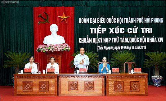Sáng 15/10, tại huyện Thủy Nguyên, Hải Phòng, Thủ tướng Nguyễn Xuân Phúc và đoàn đại biểu Quốc hội TP. Hải Phòng đã có cuộc tiếp xúc cử tri để chuẩn bị cho kỳ họp thứ 8 Quốc hội khóa XIV.
