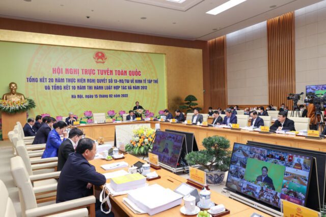 Ngày 15/2, Thủ tướng Chính phủ Phạm Minh Chính chủ trì Hội nghị trực tuyến toàn quốc tổng kết 20 năm thực hiện Nghị quyết số 13-NQ/TW về kinh tế tập thể và tổng kết 10 năm thi hành Luật Hợp tác xã (HTX) năm 2012.