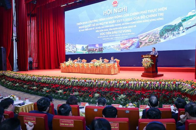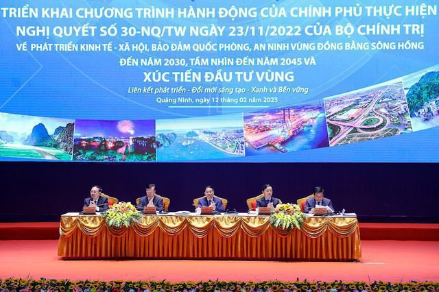 Ngày 12/2, tại thành phố Hạ Long, tỉnh Quảng Ninh, Thủ tướng Phạm Minh Chính chủ trì Hội nghị triển khai Chương trình hành động của Chính phủ thực hiện Nghị quyết số 30-NQ/TW ngày 23/11/2022 của Bộ Chính trị về phát triển kinh tế – xã hội và bảo đảm quốc phòng, an ninh Vùng Đồng bằng sông Hồng đến năm 2030, tầm nhìn đến năm 2045 và Xúc tiến đầu tư Vùng với chủ đề “Liên kết phát triển – Đổi mới sáng tạo – Xanh và Bền vững”.
