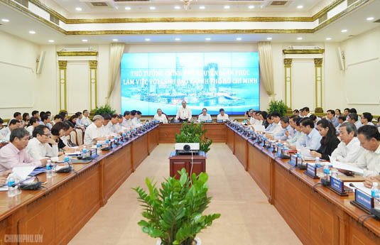 Phát biểu tại cuộc làm việc, Thủ tướng bày tỏ vui mừng về kết quả mà TPHCM đạt được như GRDP tăng cao hơn mức bình quân chung của cả nước. Đầu tư nước ngoài tiếp tục đứng thứ 2 cả nước với nhiều dự án có chất lượng hơn. Năng suất lao động bình quân cao gấp 3 lần của cả nước. Tinh thần tiên phong, tính dẫn đầu của Thành phố vẫn được khẳng định trong hành động, trong chỉ đạo và những công việc liên quan, Thủ tướng nêu rõ.