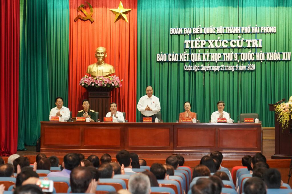 Sáng 21/6, Thủ tướng Nguyễn Xuân Phúc và đoàn đại biểu Quốc hội thành phố Hải Phòng tiếp xúc cử tri, báo cáo kết quả Kỳ họp thứ 9, Quốc hội khoá XIV tại quận Ngô Quyền, thành phố Hải Phòng.