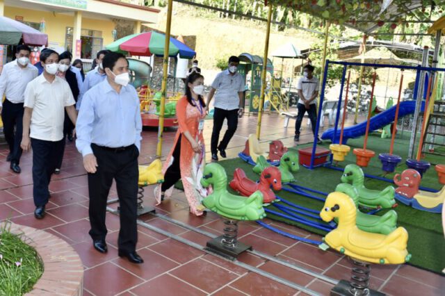Đối với giáo dục các vùng đặc biệt khó khăn, vùng dân tộc thiểu số, biên giới, hải đảo, vùng sâu, vùng xa và các đối tượng chính sách, Đảng và Nhà nước đã rất quan tâm nhưng do điều kiện thực tiễn thay đổi, tôi đề nghị các đồng chí lãnh đạo các ban, bộ, ngành, địa phương rà soát lại toàn bộ những bất cập, kiến nghị của các cơ sở giáo dục để có sự điều chỉnh hoặc đề xuất điều chỉnh chính sách phù hợp. Các bộ trưởng, lãnh đạo địa phương phải đi thực tế tận xã phường, làng bản, thôn ấp… mới cảm nhận được những khó khăn, thiệt thòi, thiếu thốn của những nơi này. Ví dụ, việc cấp phát đồ dùng cá nhân cho học sinh như đồng phục, áo nilon đi mưa, chăn, màn, chiếu cá nhân… 01 lần/trong cả cấp học đã hợp lý hay chưa? Hoặc chế độ phụ cấp đối với cán bộ phục vụ trong các trường nội trú đã phù hợp hay chưa? Chúng ta cũng vừa thăm 01 trường mầm non, tôi đề nghị các đồng chí có giải pháp tổng thể để điều chỉnh chính sách đối với giáo viên mầm non một cách phù hợp. Tôi cũng đề nghị tăng cường quan tâm đến các hoạt động ngoại khóa, thể dục, thể thao, văn hóa, nghệ thuật, giáo dục truyền thống văn hóa – lịch sử tốt đẹp của đất nước, của các dân tộc cho các cháu học sinh. Về chương trình chuyển đổi số, đề nghị Bộ trưởng Bộ Thông tin và Truyền thông quan tâm hơn nữa tới các vùng khó khăn, các em học sinh tại những nơi này sẽ chịu thiệt thòi nếu không đủ điều kiện để học trực tuyến trong trường hợp cần thiết.