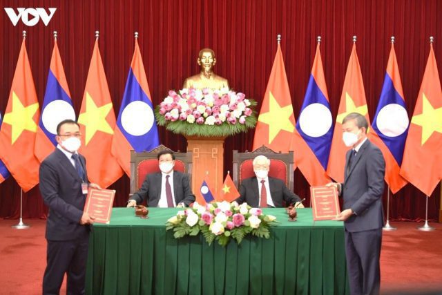 Thay mặt Đảng, Nhà nước và nhân dân hai nước Việt Nam và Lào, Tổng Bí thư Nguyễn Phú Trọng và Tổng Bí thư, Chủ tịch nước Thongloun Sisoulith đánh giá cao sự ủng hộ, giúp đỡ quý báu, chí tình chí nghĩa và có hiệu quả mà hai Đảng, hai Nhà nước và nhân dân hai nước đã dành cho nhau trong sự nghiệp đấu tranh giải phóng dân tộc, thống nhất đất nước trước đây cũng như trong công cuộc bảo vệ Tổ quốc ngày nay và vừa qua đã phối hợp, giúp đỡ nhau trong các đợt phòng, chống dịch Covid-19.