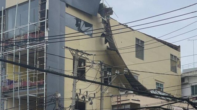 Trên đường Phổ Quang, quận Tân Bình, một dãy mái tôn được dựng tại một công trình giữ xe trên đường này cũng bị hất tung, đổ ra đường, may mắn không ai bị thương.