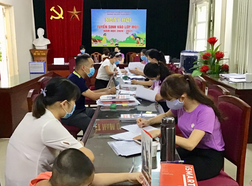 Trường tiểu học Giang Biên đã thông báo công khai chỉ tiêu, thời gian tuyển sinh và hình thức tuyển sinh năm học 2020-2021 đến toàn thể phụ huynh học sinh; tổ chức tiếp nhận trẻ em trong độ tuổi thuộc tuyến tuyển sinh; tạo mọi điều kiện thuận lợi và hỗ trợ phụ huynh trong quá trình tuyển sinh trực tuyến và tuyển sinh trực tiếp; nhất là đối với gia đình học sinh có hoàn cảnh khó khăn; đảm bảo quyền lợi được học tập cho học sinh. Nhà trường đã hoàn thành và vượt chỉ tiêu kế hoạch. Đến thời điểm này, nhà trường đã tuyển sinh được gần 250 học sinh/6 lớp. Các em đã đựợc bố mẹ đưa đến trường để tham quan, làm quen với ngôi trường mới trong niềm hân hoan, phấn khởi. Ngoài ra, giáo viên chủ nhiệm các lớp khối 2,3,4,5 thường xuyên giữ mối liên hệ với phụ huynh, thông tin kịp thời đến phụ huynh về những điểm mới, về kế hoạch tựu trường, khai giảng năm học mới.
