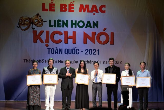 Liên hoan Sân khấu Kịch nói toàn quốc 2021 vừa được tổ chức thành công tại TP.HCM với 6 Huy chương vàng được trao cho 6 vở diễn xuất sắc trong số 26 tác phẩm tham dự. Trong đó đáng chú ý tác phẩm “Câu hò đất Mẹ” đã nhận về 6 huy chương cho các cá nhân, tập thể, tác phẩm được giới chuyên môn lẫn khán giả đánh giá xứng đáng với giải Vàng cho tác phẩm. Đặc biệt, đây là tác phẩm ra đời từ sự kết hợp giữa Trường đại học văn hóa Tp.HCM với Công ty TNHH Tổ chức biểu diễn Phiêu Linh.