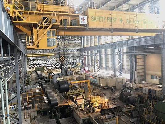 Những cuộn thép đen nhánh được hệ thống cẩu khổng lồ nhấc lên đưa qua đưa lại trong xưởng rộng lớn. Anh cán bộ ở xưởng cán nóng thép cuộn cho biết, một cuộn thép nặng trung bình 22 tấn, nhẹ nhất cũng 16 tấn. “Tháng vừa rồi, Công ty sản xuất được 350.000 tấn thép cuộn. Còn số lượng thép dây ít hơn”, anh cán bộ nói.